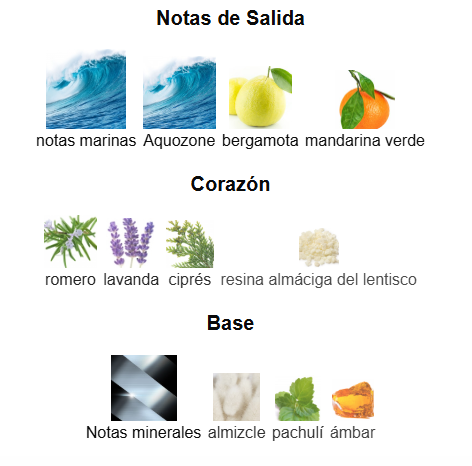 Salida: Bergamota, mandarina verde, notas marinas