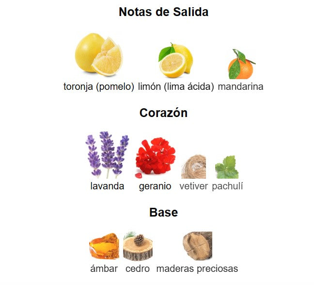 Corazón: Lavanda, geranio y pachulí, que añaden un toque aromático y refinado.