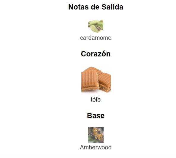 Fondo: Madera de ámbar, que aporta profundidad, sensualidad y una fijación duradera.