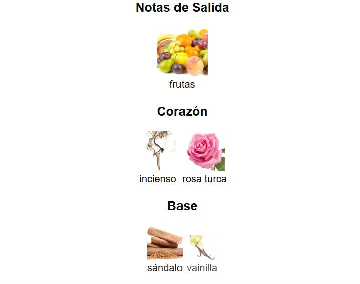 🔹 Notas de fondo: Vainilla, haba tonka, ámbar y maderas suaves, creando una base cálida, sensual y duradera con un toque dulce y especiado.
