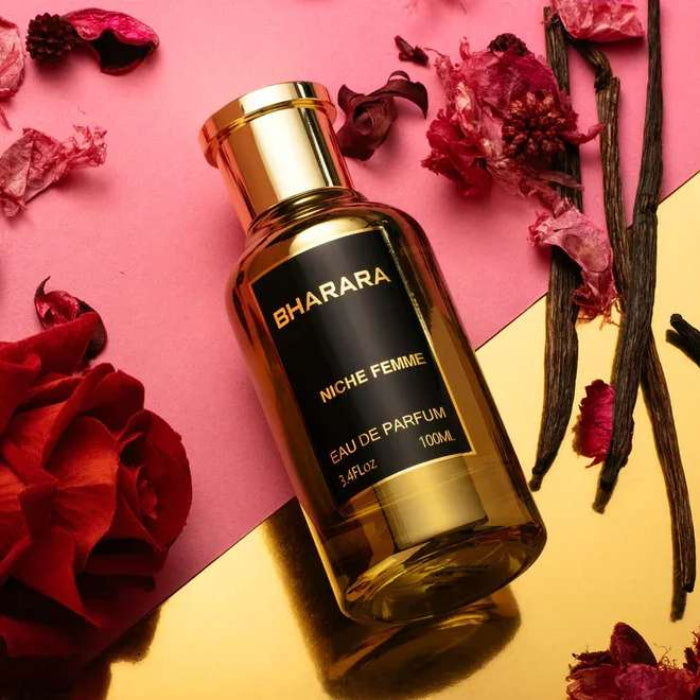 Una fragancia sofisticada y elegante que resalta la feminidad con un equilibrio perfecto entre notas florales, frutales y amaderadas. Bharara Niche Femme es un perfume envolvente y sensual, ideal para la mujer que busca un aroma distintivo y refinado.