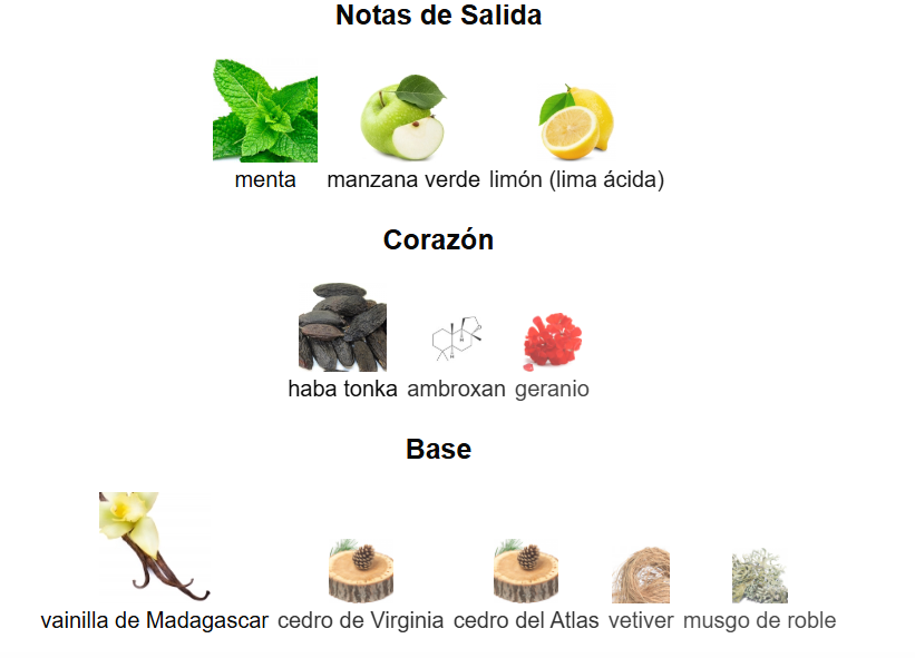 Fondo: Vainilla, cedro, vetiver, musgo de roble