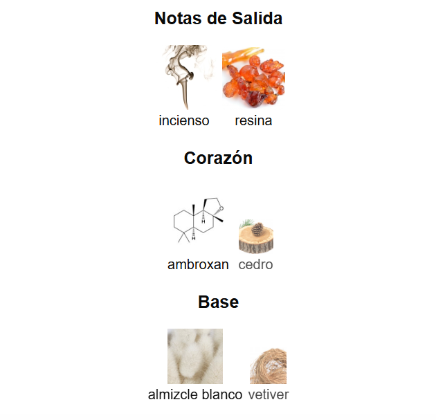 Notas de salida: Resinas e incienso, una apertura ahumada y balsámica que evoca misterio y profundidad.