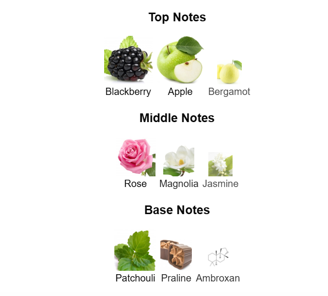 Notas de salida: Bergamota, manzana y grosella negra, una apertura chispeante y jugosa que despierta los sentidos.