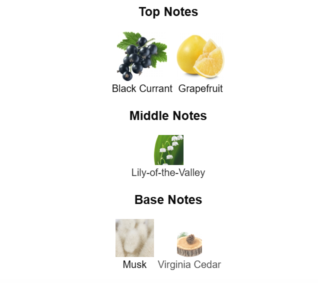 Notas de salida: Grosella negra, toronja y hojas verdes, una apertura vibrante y fresca que llena de energía.