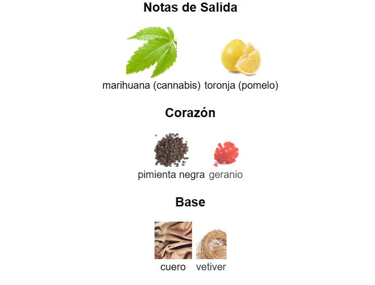 Salida: Pomelo y cannabis, una combinación explosiva de frescura cítrica con un matiz verde y atrevido.