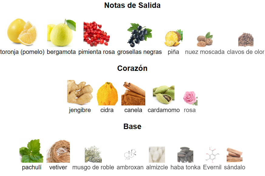 Salida: Toronja, bergamota, grosella negra, piña