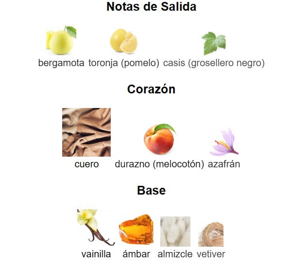 Fondo: Vainilla, almizcle y notas amaderadas, otorgando profundidad, sensualidad y una fijación excepcional.