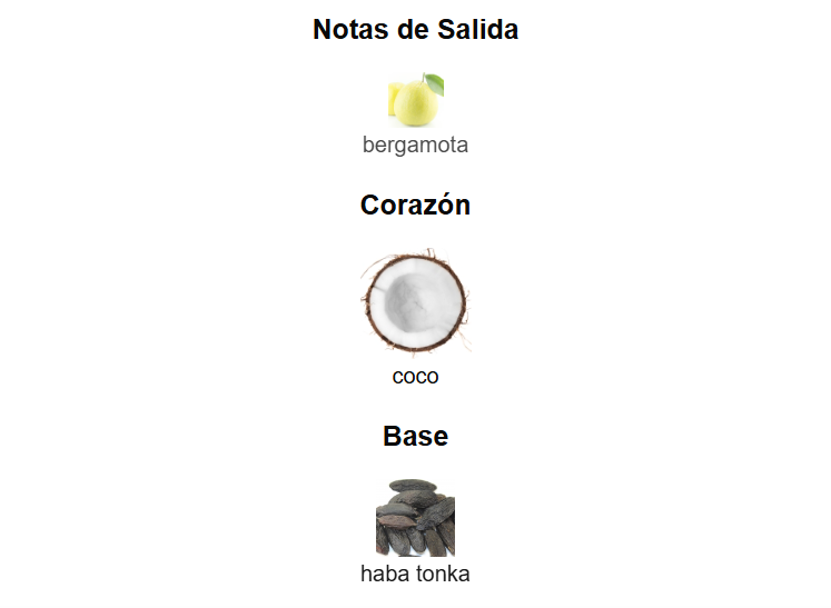 Notas de Corazón: El corazón revela una nota exótica y seductora de coco, que añade un toque cremoso y tropical, transportando los sentidos a un paraíso soleado.
