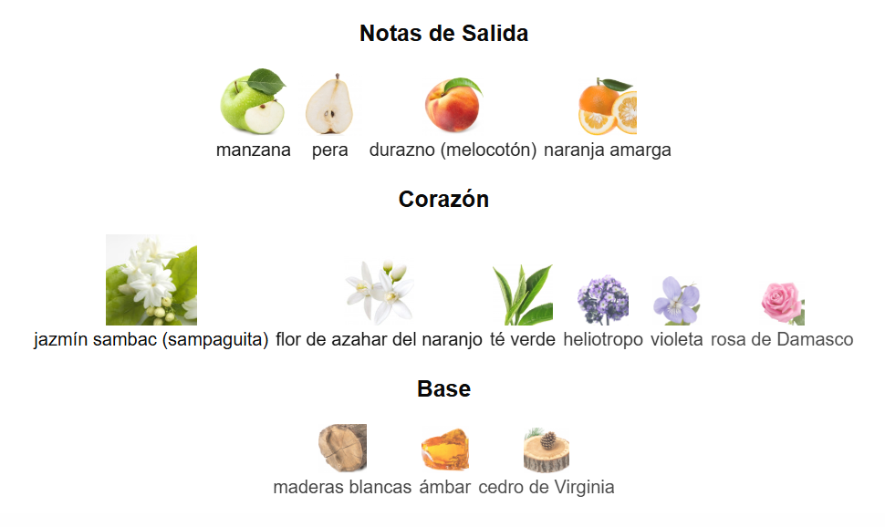 Notas de salida: Manzana verde, naranja amarga, durazno.