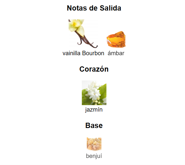 Notas de Fondo: La fragancia culmina con una base cálida y envolvente de benjuí y ámbar, que deja una estela profunda, sensual y duradera.