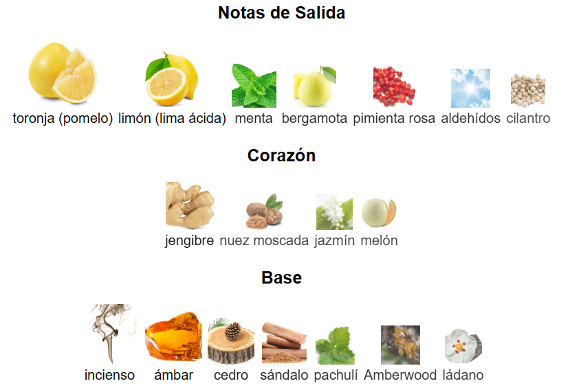 Fondo: Sándalo, incienso, cedro, pachulí, ámbar, almizcle
