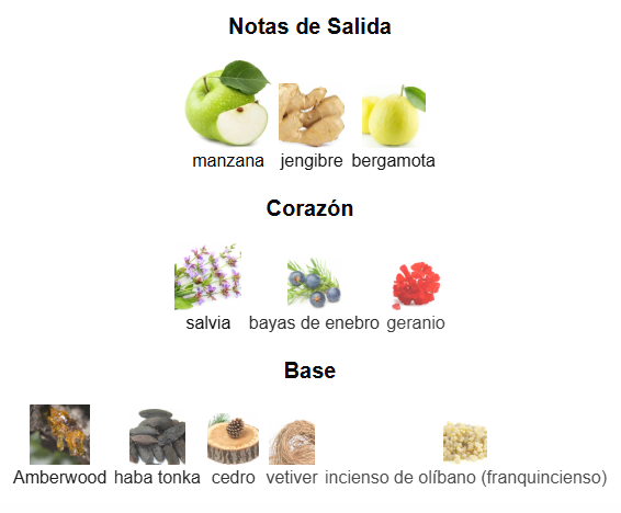 Fondo: Vetiver, haba tonka, cedro, incienso, ámbar gris