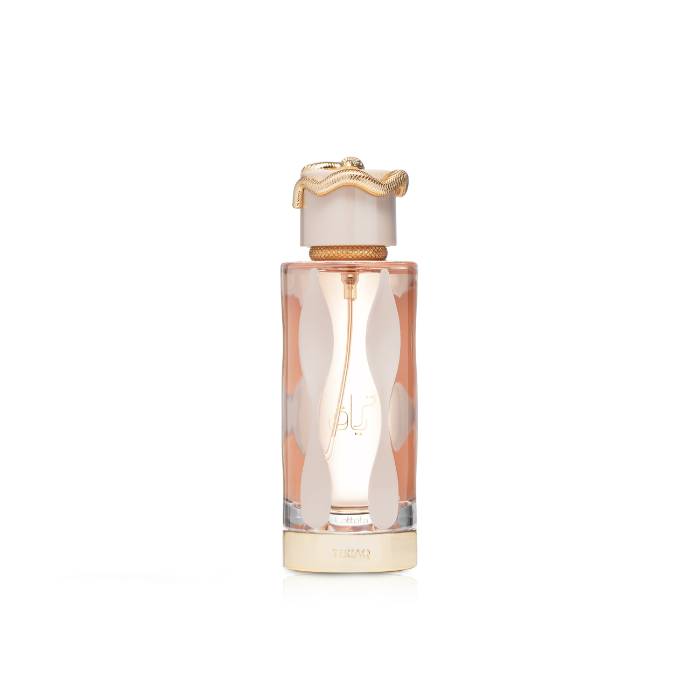 Lattafa Teriaq es una fragancia unisex lanzada en 2024, creada por el perfumista Quentin Bisch. Este perfume ofrece una experiencia olfativa rica y compleja, combinando notas dulces, especiadas y amaderadas que resultan en un aroma sofisticado y envolvente.